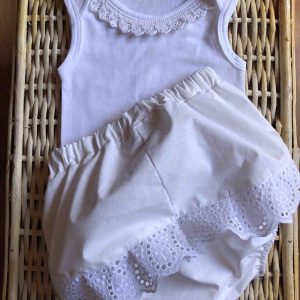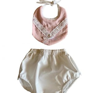 CUBRE PAÑAL BLANCO + BABERO ROSA TALLA 12 MESES