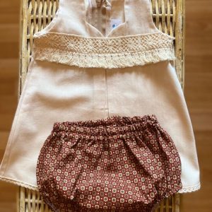 CUBRE PAÑAL ROSA VIEJO + BLUSA ML TALLA 3-4 MESES