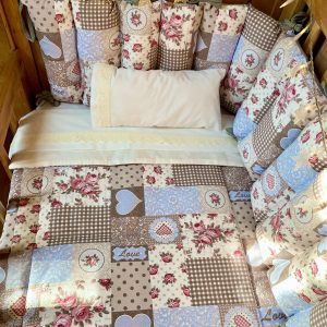 SET CUNA COLECHO TELA PREMIUM FLORES Y HOJAS PASTEL