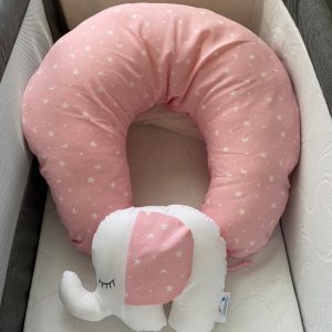 Nuestro cojín de lactancia es grande en relación a los cojines que se encuentran en el mercado. Está relleno en hollofil siliconado, fibra hipoalergénica de uso especial para bebés.