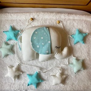 CARACTERISTICAS: Mide 25X20cm. Está confeccionado completo, no tiene funda removible debido a su diseño de elefante, es un cojín blandito, especial para uso tipo contención, o de almohadita en los primeros meses del bebé.