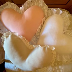 Cojín con 2 ojitos y boquita bordados a mano + 2 orejas.