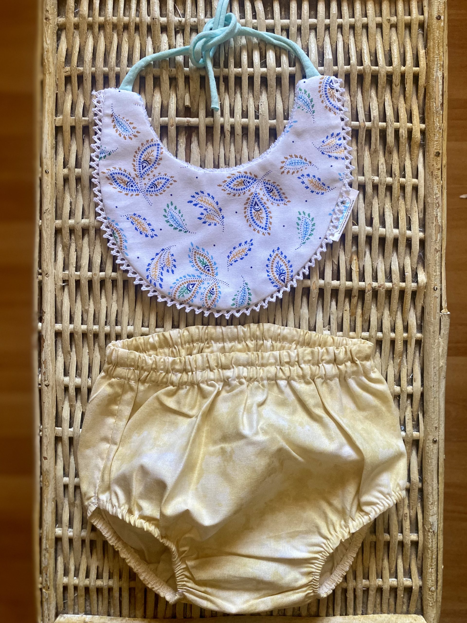 CUBRE PAÑAL + BABERO PASTEL TALLA 9 MESES