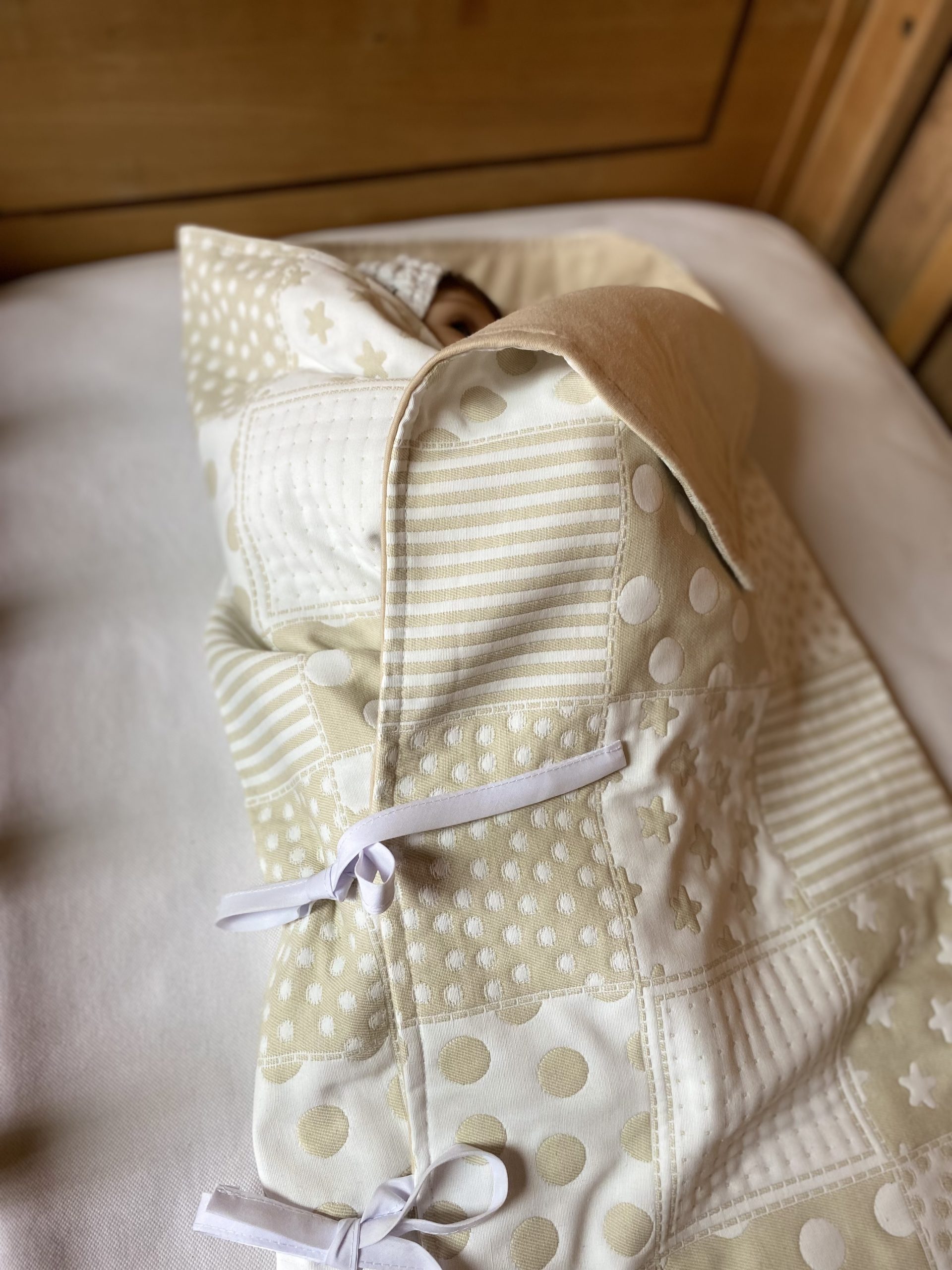 Nuestro saco manta está diseñado y pensado en el recién nacido, para abrigar sus primeros meses de vida. Es extremadamente liviano y a la vez abrigador, ya que está confeccionado con forro interior algodón.
