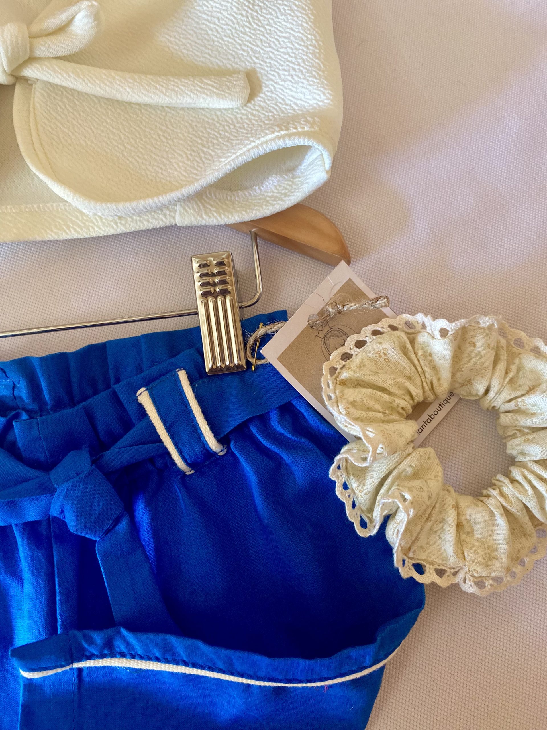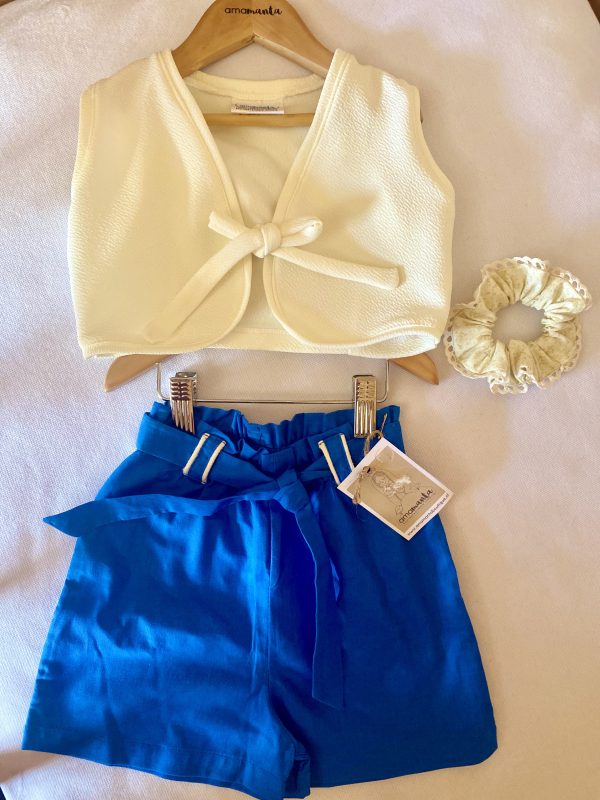 SHORT EN TELA DELGADA CON AMARRA EN LA CINTURA + CHALECO SIN MANGA EN SET + COLET