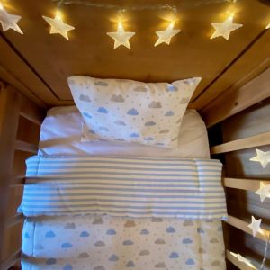 Este set de cuna está diseñado para cunas colecho o moisés. Cunas pequeñas, cuyos colchones fluctúan entre rangos de 55×85 y 60×90 cm.