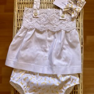 CUBRE PAÑAL BRODERIE + BABERO + SET PINCHES TALLA 12-18 MESES