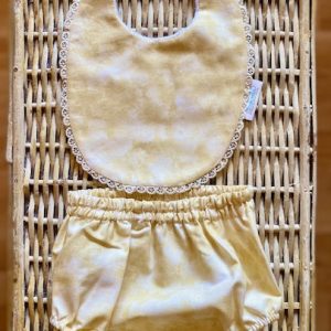 CUBRE PAÑAL BRODERIE + BABERO + SET PINCHES TALLA 12-18 MESES
