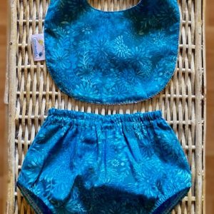 CUBRE PAÑAL + BABERO AZUL FLORES TALLA 6 MESES