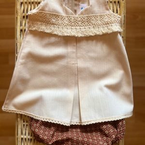 VESTIDO CRUDO FLECOS TALLA 4 – 6 MESES